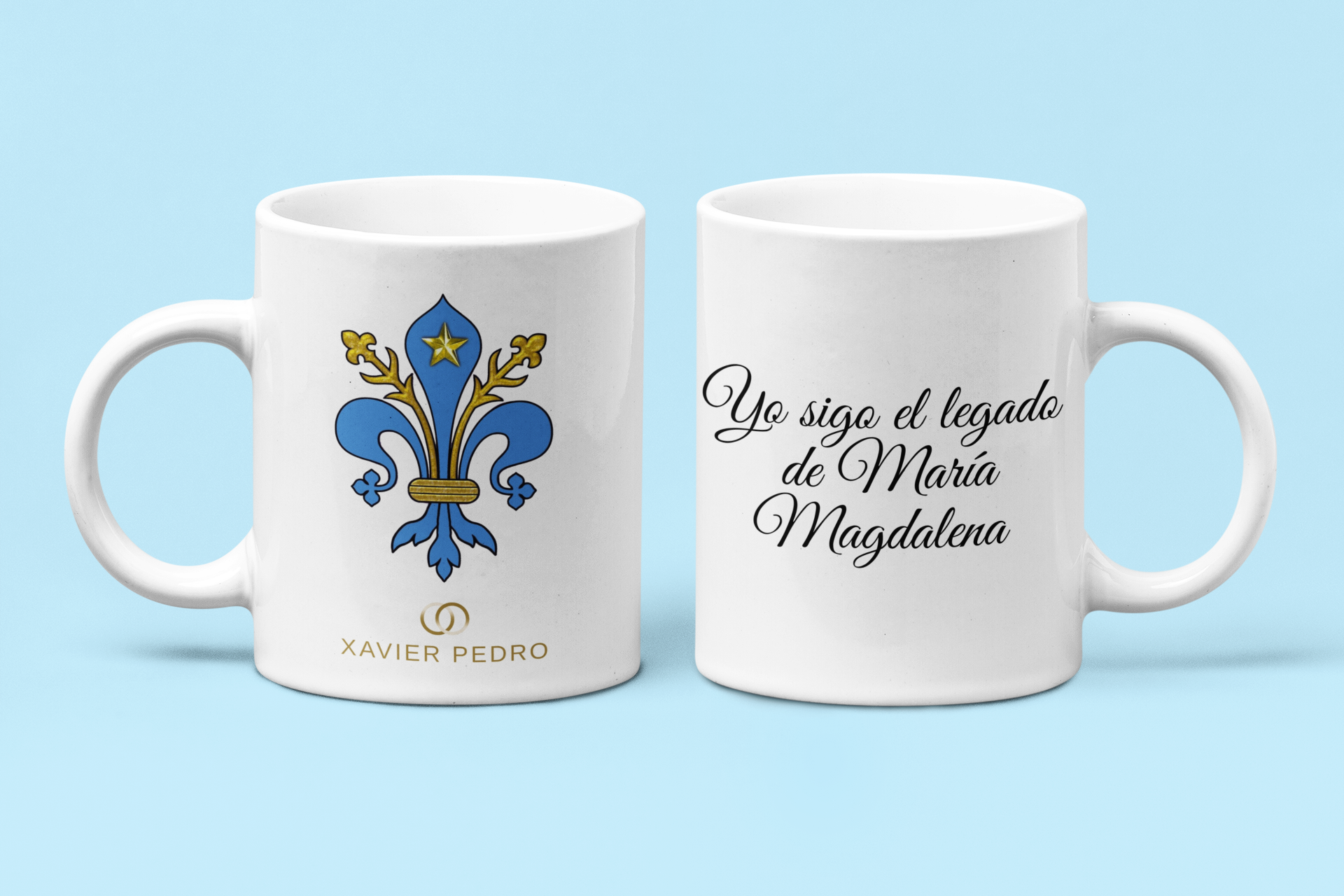 Taza con Flor de Lys Azul y Dorado - "Yo sigo el legado de María Magdalena"